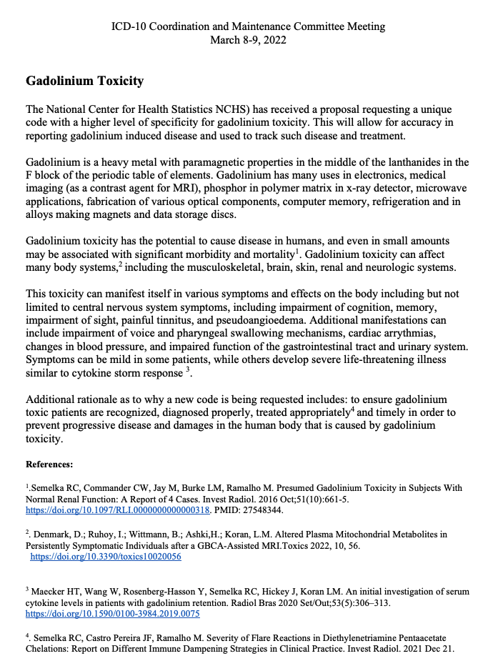 Furthermore, despite the CDC’s acknowledgment of gadolinium toxicity in 2022, it remains largely unrecognized by the medical community and regulatory agencies. To date, no significant changes have been implemented in MRI practices: patients are still without genuine informed consent, doctors are not diagnosing Gadolinium Toxicity/GDD patients with the ICD10 gadolinium codes, and patients’ treatments are not covered by insurance. Despite all of this, and patients warning others of the dangers of gadolinium for decades, the use of MRI contrast agents is actually increasing.
